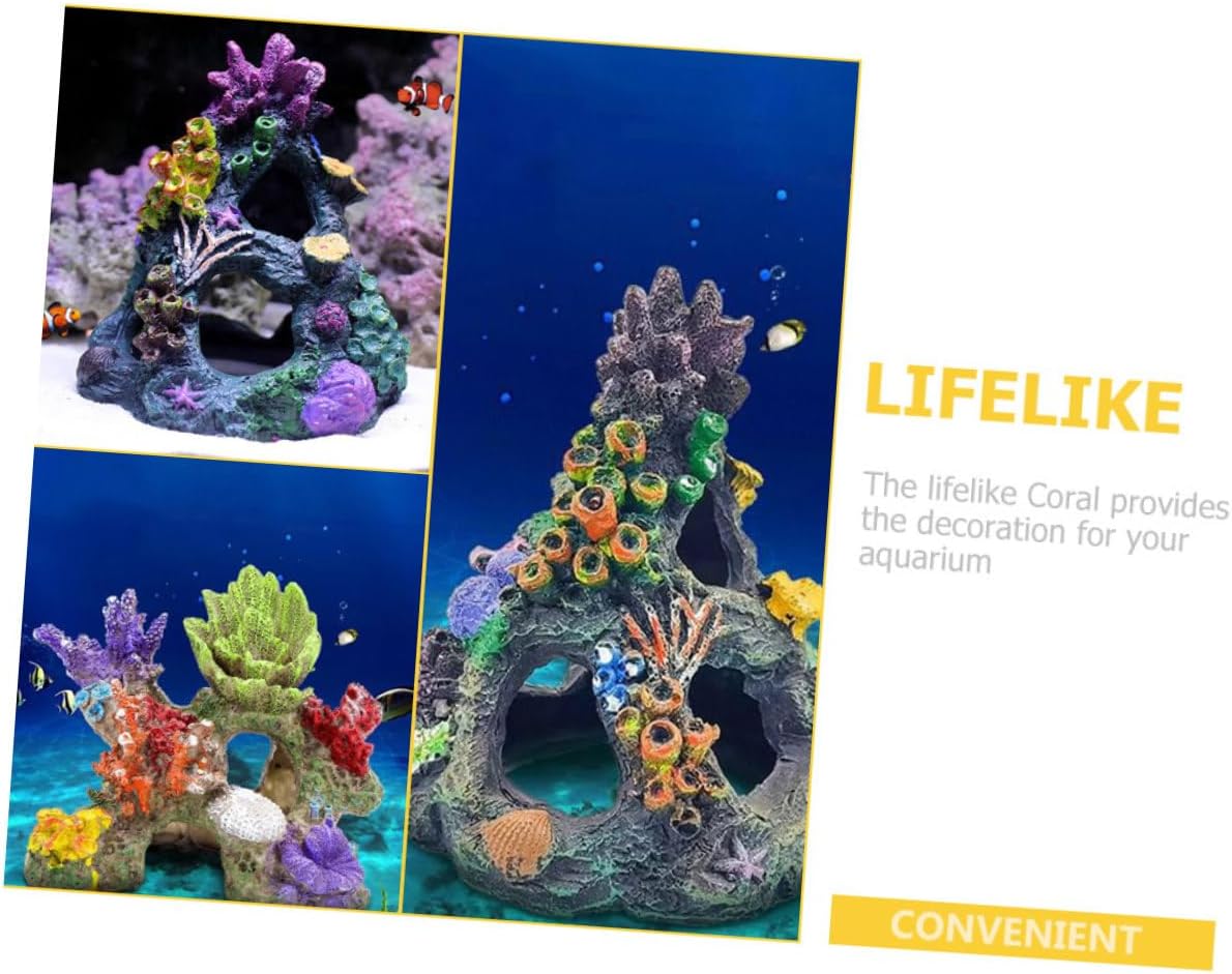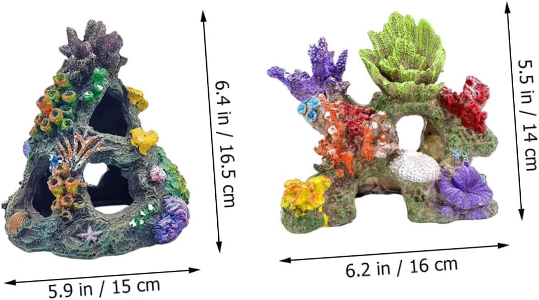 Package Include 2 x Tank Ornaments Features -Color:Assorted Color artificial aquarium rocks -Material:Resin fish tank accessories -Size 2:16.00X10.00X14.00cm/6.29X3.93X5.50in resin craft for fish tank -Size 1:15.00X14.00X16.50cm/5.89X5.50X6.48in resin coral decoration - Artificial coral decoration, well help create a beautiful scenery for your large fish tank tank hideout stone. - Use it to change the old style of your aquarium. It can make the aquarium space more refreshing underwater craft. - Small and lightweight, easy to store, this simulation coral ornament is not taking up any space aquarium hideout stone. - It has the advantages of no deformation, no fading, and constant preservation as new aquarium hideaway decor. - Owning the and break resistance ability. It can be placed steadily and not easy to fall and overturn aquarium resin craft. Goods Information coral adornment Suit for freshwater and saltwater.tank stone decoration It doesn't harm your fish, shrimp or create any bad impact on water condition.artificial coral statue Adds some color and beauty to any fish tank.fish tank decorations Realistic modeling make it become a decoration for your fish tank