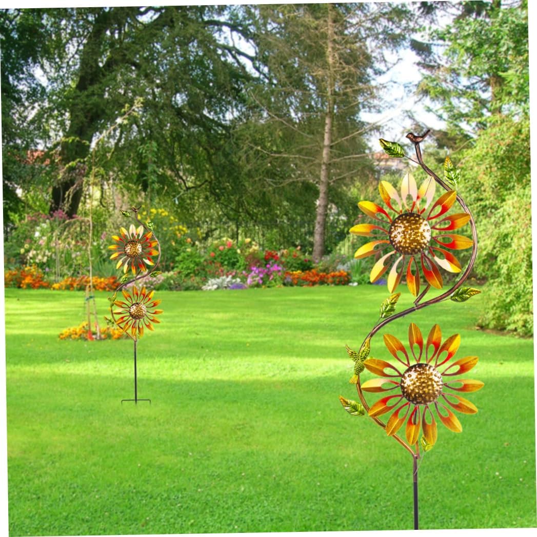 Description: This Sunflower Wind Spinner for Garden combines striking sunflower aesthetics with practical solar-powered LED illuminations, designed to bring a lively and eco-friendly accents to any outdoor environment. Made from robust iron metal, the wind spinner withstands harsh weather and resists rust, ensuring long-lasting durability and vivid color retention. Its smooth, quiet spinning mechanism responds to light breezes, creating a mesmerizing display that livens up yards, patios, or balconies effortlessly. The integrated solar panel harvests sunlight during the day, powering bright LED lights that glow warmly after dusk, adding enchanting nighttime appeal without extra energy consumption. Perfect for gardeners and outdoor decor enthusiasts seeking a unique, sustainable, and low-maintenance piece, this sunflower wind sculpture blends beauty and functionality to elevate your outdoor living experience while naturally attracting admiration. Features:. Sunflower Wind Spinner. -Color: Yellow. -Material: Iron. Note:Manual measurement, please allow slight errors on size.The colors may exist slight difference due to different screens. Package Including 1Pcs Sunflower Wind Spinner