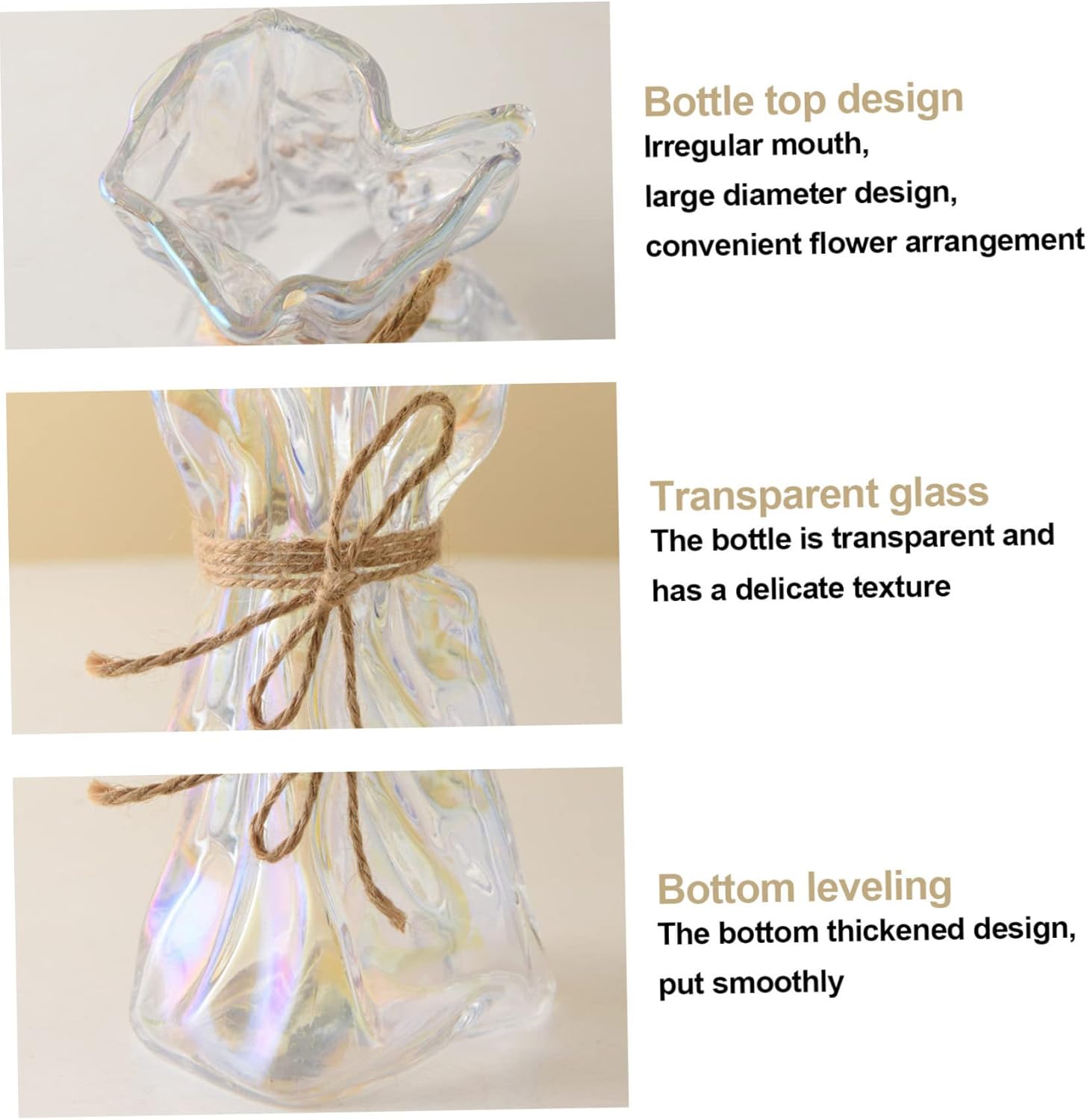 Description: -Material: Glass. Enhance your home decor with this Transparent Glass Vase! This modern vase has an irregular shape and is made from clear glass, giving it a unique and stylish look that is sure to stand out. It is perfect for displaying flowers, branches, or simply as a decorative piece on its own. Its compact size also makes it great for table decoration or as an addition to your existing home decor. Create a beautiful display in any room of your home with this Transparent Glass Vase! Features:. -Size: 9.5x8x14.5 cm/3.74x3.15x5.71 inch. -Color: Transparent. Note: For manual measurement, please allow slight errors in size. The colors may exist slight differences due to different screens. Package Including 1 * Vase